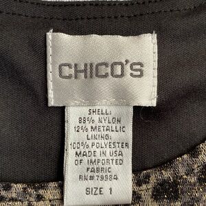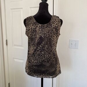 Chicos mesh leopard print tank top. Size 1. Per Chicos sizing this is an 8. Lined. Sparkles with gold flicks. Would look fabulous under a blazer or with a cropped leather jacket. Also works as a going out top!