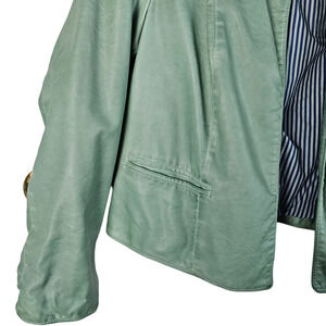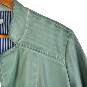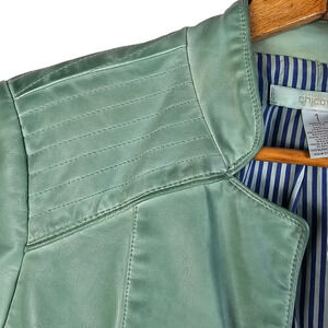 Chicos mint green pleather vegan open front jacket shoulder details size 1