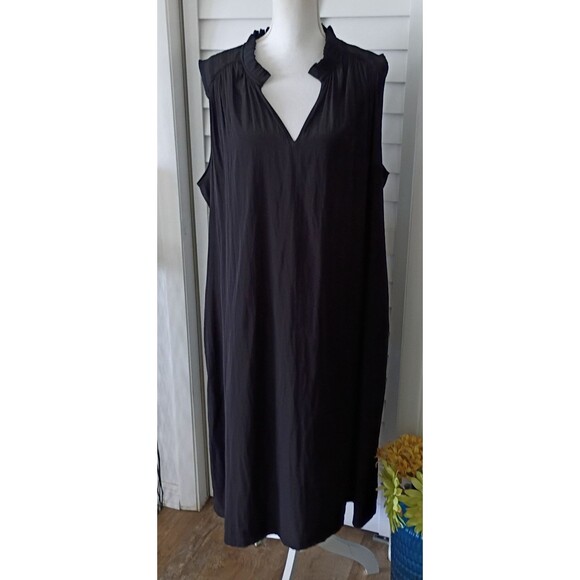 Chico's modern peasant black sleeveless midi dress smocked shoulder V Neck XL/20