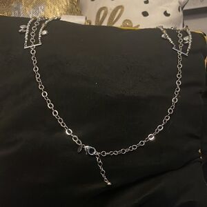 Extra long (30-40”) triple strand illusion necklace silver tone boho chic ethnic statement goddess necklace