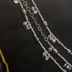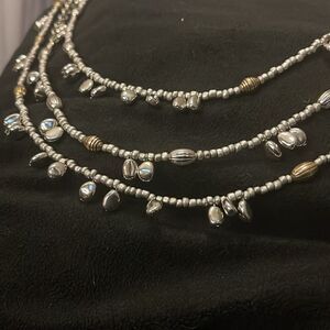 Chicos multi three/3 strand illusion beaded two tone necklace silver gold