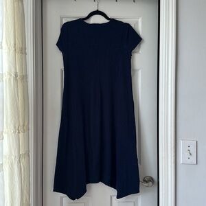 Chicos navy cotton blend seamed t-shirt dress shark bite hem small