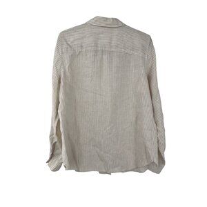 Chico’s no iron 100% linen roll tab button up top shirt size 0.5 S 6 tan striped