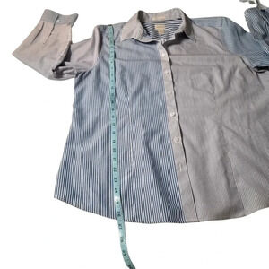 Chico's non iron size 2 button up blue/white stripped 2 ton very cute like new pre-owned shirt long sleeve very comfortable with some strech.
