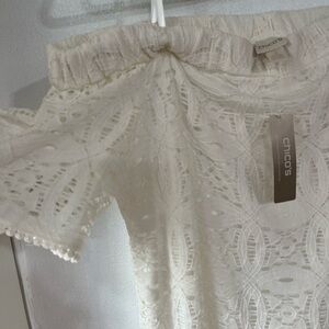 Chicos off the shoulder off white lace dress summer formal dinner NWT size 2