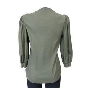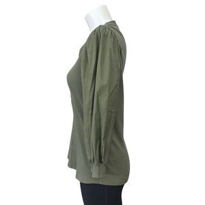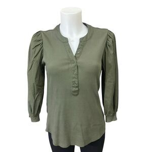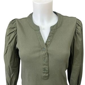 Chico’s olive Green Button-Placket Puff-Sleeve Tee sz Small Cotton Blend