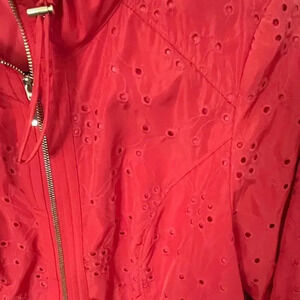 Chico’s orange eyelet zip front 3/4 sleeve windbreaker jacket size Medium