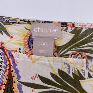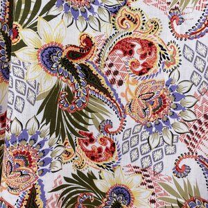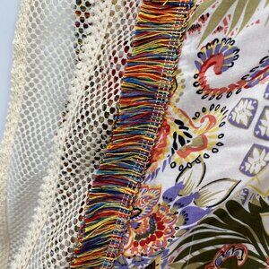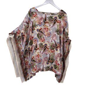 Chicos paisley print boho poncho size L/XL OS fringed colorful Cruise summer bea