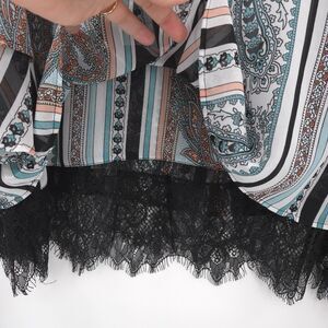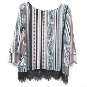 Chico's paisley stripe chiffon lace trim tunic top Size 3 (XL) flare sleeve