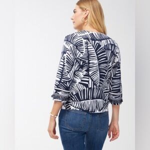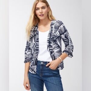 The Palm Print Cardigan does more than your basic top layer. Designed with fringed braiding, this 3/4 sleeve open neck top layer is made from cotton-blend fabric that meets your style needs for the warmer months. Use this top layer to accent everything from dresses to wide-leg crops.