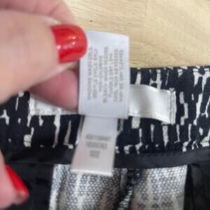 Chico’s Chicos chinos pants slacks women’s size 4 (Chico’s vanity size 0) black and white pattern as shown. Side zip modern styling.
