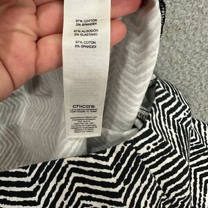 Chicos pants womens medium 2 black white zebra print cotton cropped capri resort