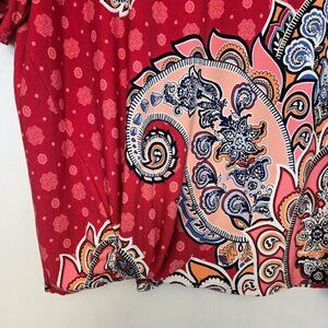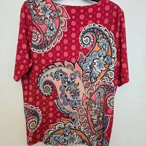 Chico's pink paisley S/S top with knotted hem detail Size 2/L