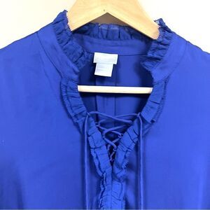 Chicos purple ruffled front wide sleeve top. Size 8/10