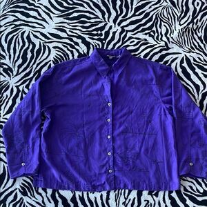 Chicos purple vintage animal print drawing button down collared shirts blouse