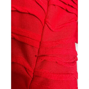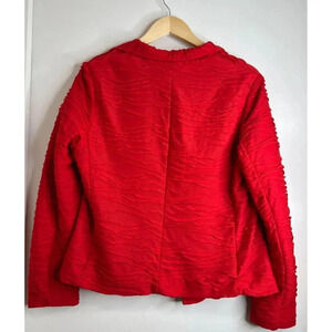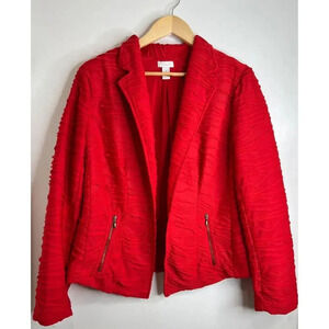 Chicos red blazer jacket open front textured zipper pockets career size Medium