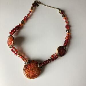 Chico's red mixed materials medallion necklace