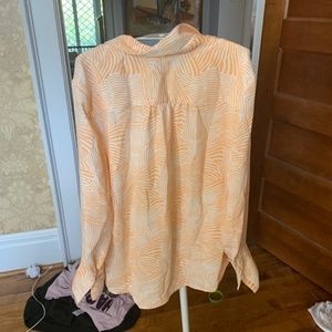 So nice snd get this for your holiday celebration. Flowy. Long like a tunic. Look at those cuffs. Machine washable . Salmon snd white