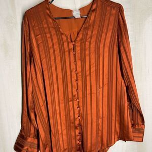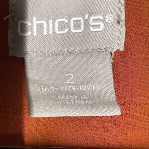 Chico’s rust color blouse button front with scarf, size 2, size 12/14.
