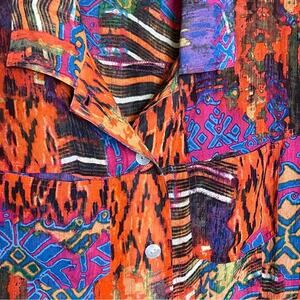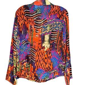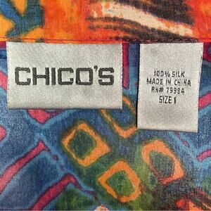 Chico’s sheer silk blouse long sleeve colorful festive party size medium 1