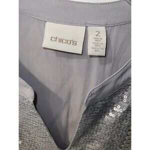 Chico's Sequin Shine Tunic Gray Long Sleeve Peasant Blouse Sz 2 womens sz large 12