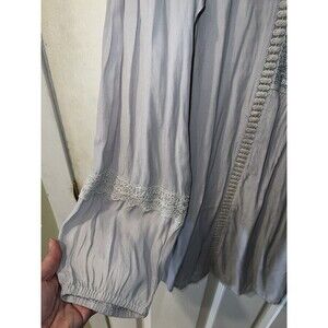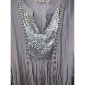 Chicos shirt Womens 2 Sz L Gray Peasant Blouse Sequin Shine Tunic babydoll Glam