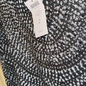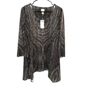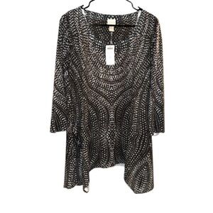Chicos shirt large Black White Patterned rhinestone Top NEW shark bite hem soft