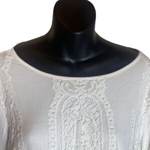 Chicos shirt top white lace front flare sleeve size 2 embroidered