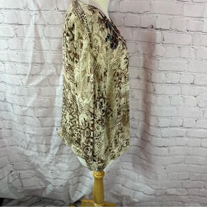 Chico's silk peasant blouse 3/4 sleeve embellished neckline sz 2 (large 12)