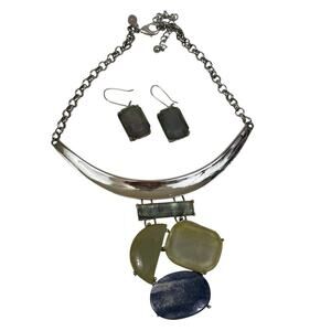 Chico's silver bib necklace/earrings, coastal, resort, vacation, bohemian, artsy