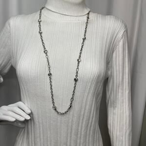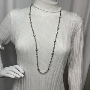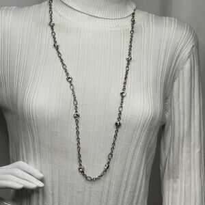 Chico’s Chicos necklace costume signed jewelry silver tone chain link long but simple, versatile and trendy, classic 36” with 3” extension.