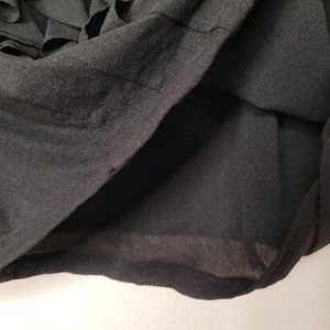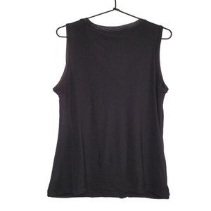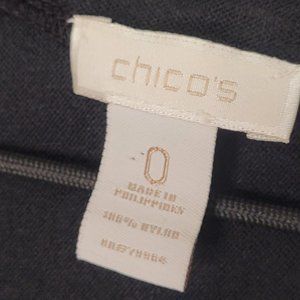 Chico's ruffle-front tank with soft v-neck, and full lining. 100% nylon, machine washable. Looks great alone or under a blazer or sweater.