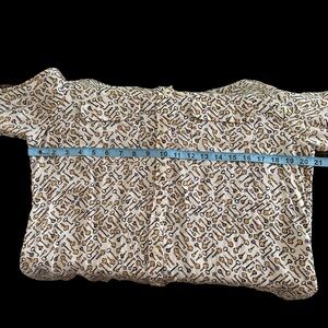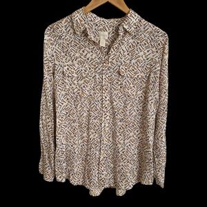 Chicos size 1 Medium Keys Print Button Up Long Sleeve Blouse Top Key Gold White