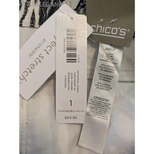 Chico's size 1 US size 8 Perfect Stretch Girlfriend Slim Ankle Jeans. Black and ivory print called "Artisanal Zebra". Retail $69.95.