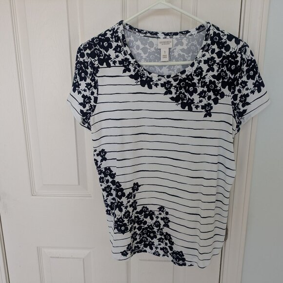 Chico's Weekends knit top - Size 1 - white with dark navy stripes and floral design