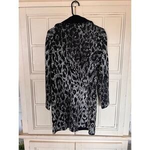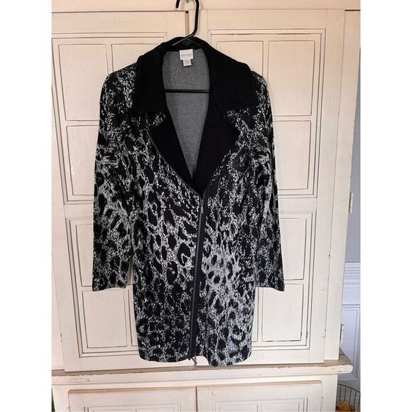 Chico’s size 1 medium long zip up sweater jacket animal print wool blend