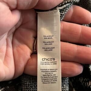 Chico’s size 1 or medium long zip up sweater jacket. Beautiful condition. 30% wool. Nice and thick and warm. Soft. Measures 20” from armpit to armpit and 32” long.