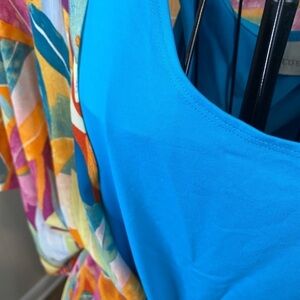 Chico’s size 1 set stretch teal tank with matching shrug size large semi sheer