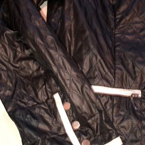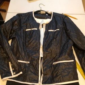 Chico’s Zenergy size 12-14 black quilted jacket with white piping