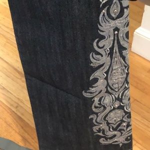 Chico’s size 12 blue high waist jeans silver & white embellished details stretch