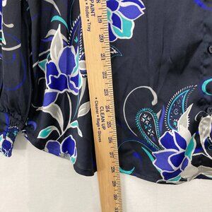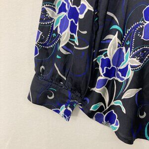 Chico's size 12/14 Black Blue Floral Long Sleeve Button Down Office Career