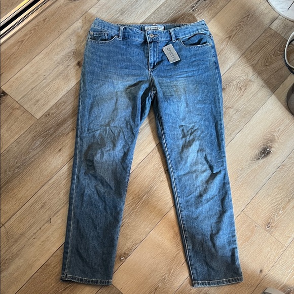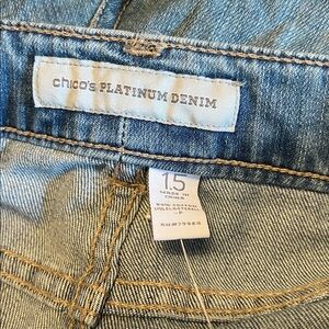 Chico's jeans in a medium wash. Casual and versatile style. Cozy.