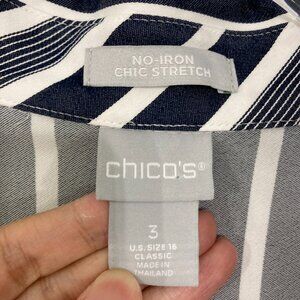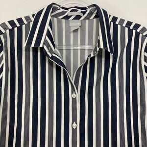 Chico's size 16 Gray White Striped Preppy Long Sleeve Button Down Office Career