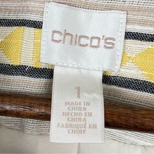 Chico’s size 1/Medium Women’s Yellow Gray Aztec Jacquard Moto Jacket