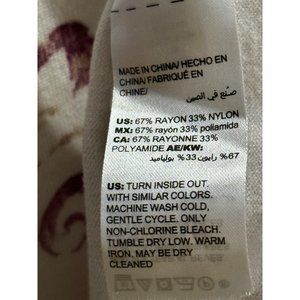Chico’s lightweight sweater in size 2 (L) flaunts a pleasing cream purple paisley design. Long sleeved and made from a cozy rayon blend, it's perfect for women seeking comfort and style. It has been steamed and comes from a smoke free home.
