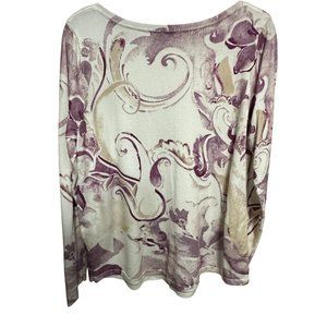 Chico’s size 2 (L) cream purple tan paisley long sleeve lightweight sweater