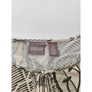Chicos size 2 (L) modal blend floral scoop neck tie collar EUC green career *