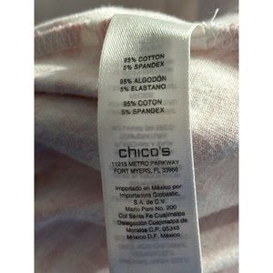 Chico's sz 2 (L) orange print top is the perfect blend of style and comfort. Showcasing a vibrant print, 3/4 cuffed sleeves, and a flattering v neck, this top is a must-have for any fashion-forward woman. Comes from a smoke free home.