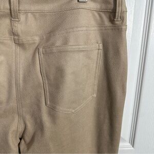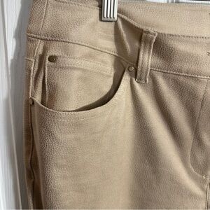 Chico's pants in size 2, which is approximately a US size 12. Gorgeous beige suede-feel material, straight leg. 5 pocket styling. 88% polyester, 12% spandex.