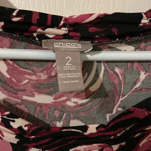 Chico’s size 2 blouse three-quarter sleeves, tapered neck, very flattering top